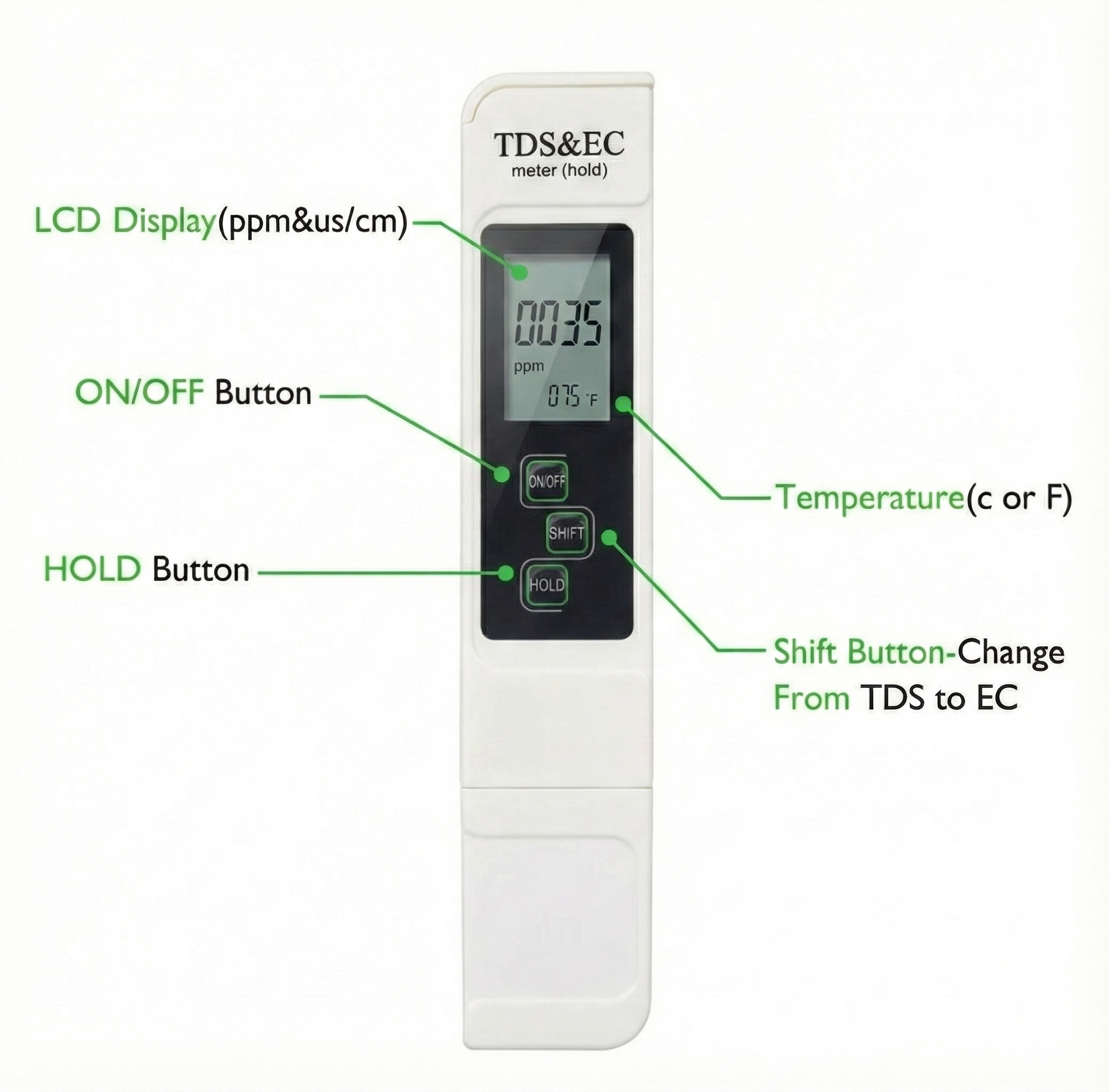 ✓ Auto Temperature Compensation: Ensures accurate readings across different temperatures